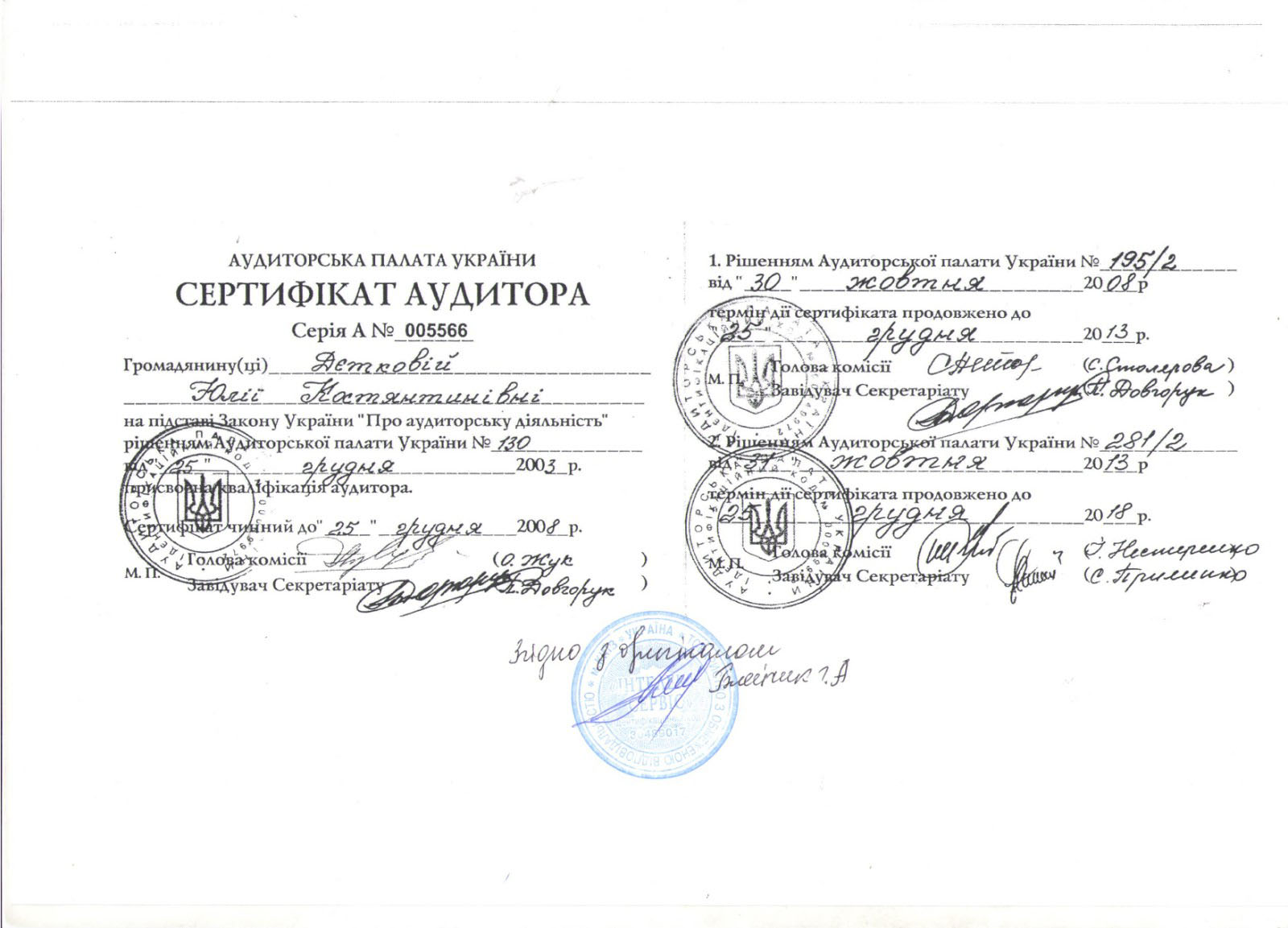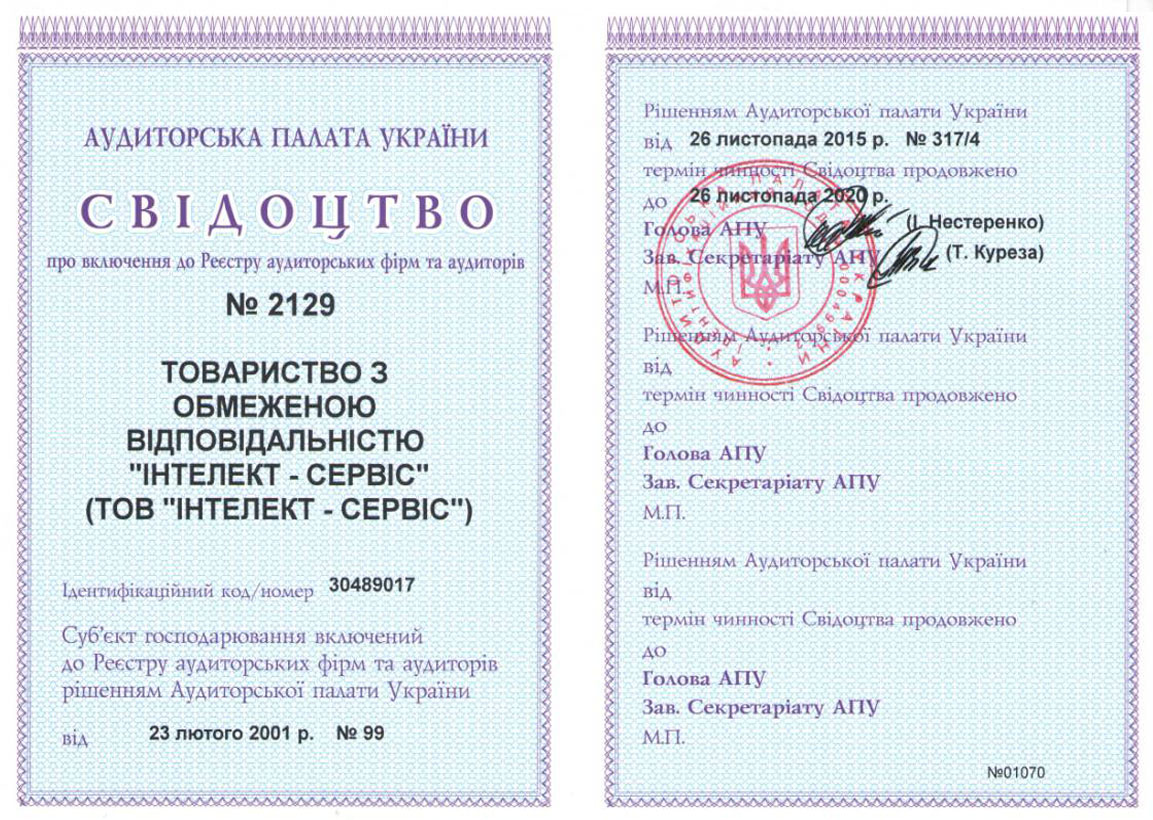 Розділу «СУБ”ЄКТИ АУДИТОРСЬКОЇ ДІЯЛЬНОСТІ», що ведеться Аудиторською палатою України за № 2129 .